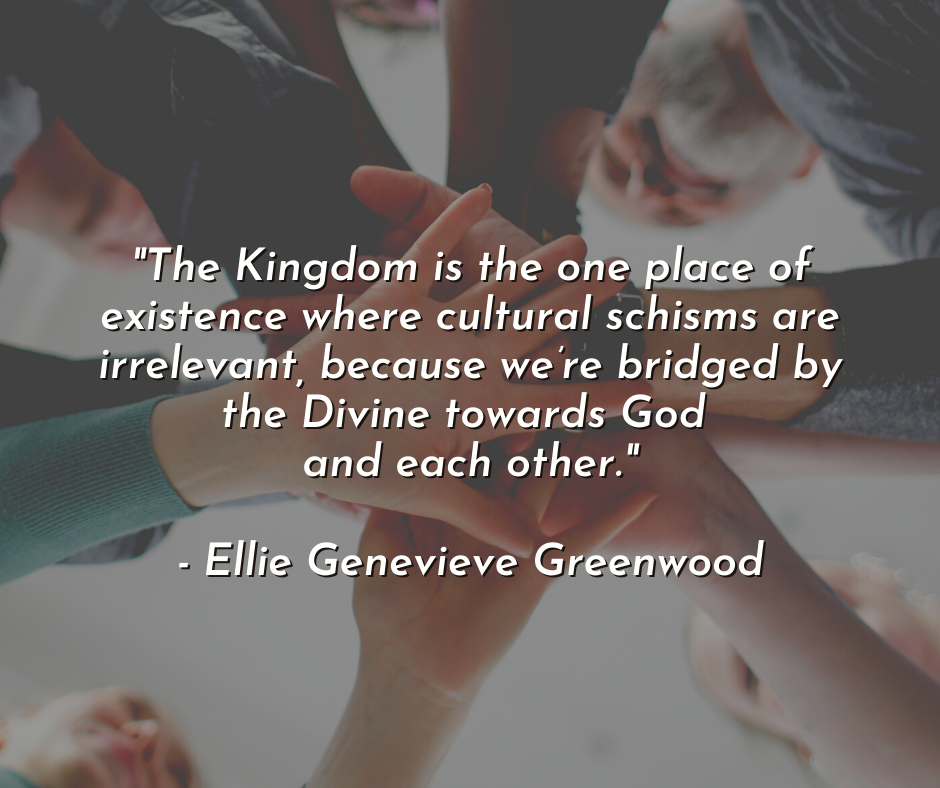 But for me, the words of my Christ have been a bridge towards every person in that personal process. He tells me that if my loudness is part of my brokenness, it can be healed. But that if it’s inane to my person, it should be accepted. I can rest in Christ, because I’ll never truly figure out which is which (especially since it changes). Reaching for Him in these challenges bridges me to others and carves in a seat at church that fits only me. I’m there because I was called, not even of my own volition, even in these times my heart deceives me into feeling like I ultimately don’t belong. The Kingdom is the one place of existence where cultural schisms are irrelevant, because we’re bridged by the Divine towards God and each other. I can be there in all my foreign nature. I think it adds a layer of truth to welcoming the foreigner.